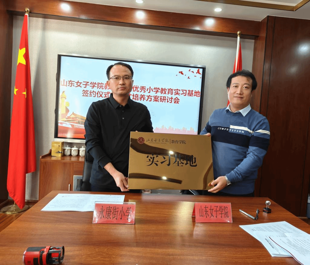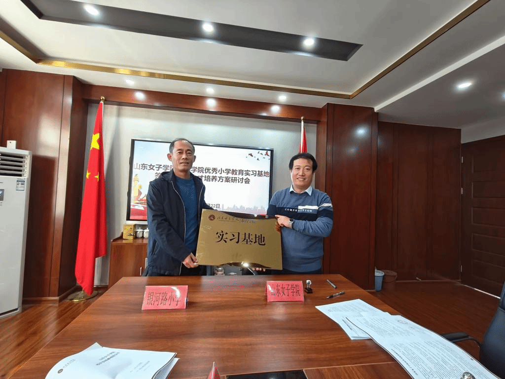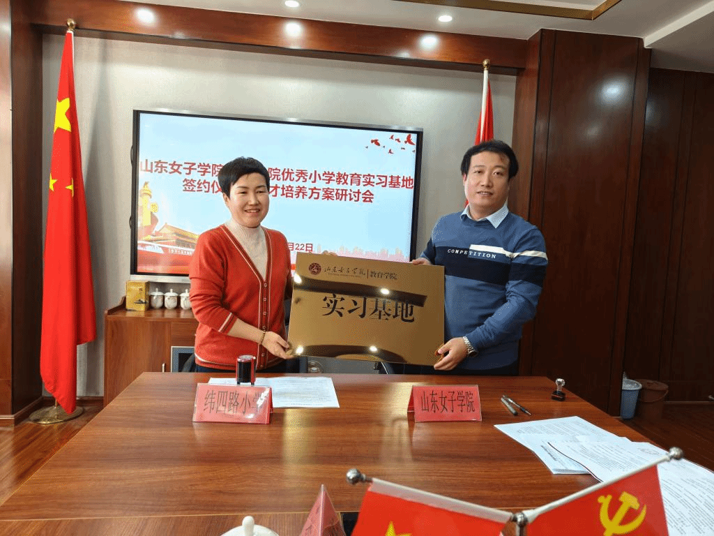 为进一步提升人才培养质量,拓展教育实习基地,丰富实践教学资源,2024年11月22日,我院与济阳区四所优秀小学隆重举行了教育实习基地签约授牌仪式。山东女子学院教育学院院长助理王录平、山东女子学院教育学院小学教育教研室主任王荟、小学教育教研室副主任王志勇、小学教育教研室教师李献庆、济阳区教育和体育局副局长姜延元、济阳区纬四路小学校长范淑芹、济阳区永康街小校长学闫学勇、济阳区新元学校校长尹民太、济阳区银河路小学校长张伟共同出席签约授牌仪式。