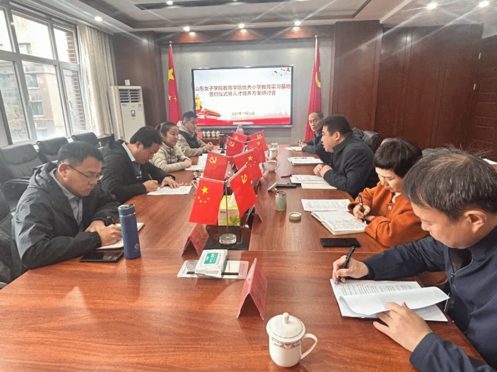 山东女子学院教育学院院长助理王录平对济阳区教体局和四所学校为我院学生提供实习见习的机会和高质量的实践指导表示了感谢,并向对方介绍了我院办学历史、专业设置、师资队伍、社会服务等情况。希望通过实习基地的建立,搭建共同发展的平台和长效合作机制,在实习见习、师资培训、课程资源开发、教学研究等方面积极交流、深度合作。