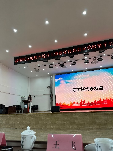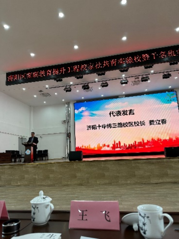 在全体与会人员见证下,济阳区妇联主席刘泽云与济阳区教体局局长韩清林共同为“家校社共育实验校”揭牌,标志着全区首个协同育人实践基地正式落地。济阳十中校长费立春作为实验校代表发言,承诺以“家校课程共建、教育资源共享”为抓手,探索可复制推广的育人经验。班主任代表与家长代表分别从班级管理和家庭陪伴角度,表达了践行协同育人理念的决心。