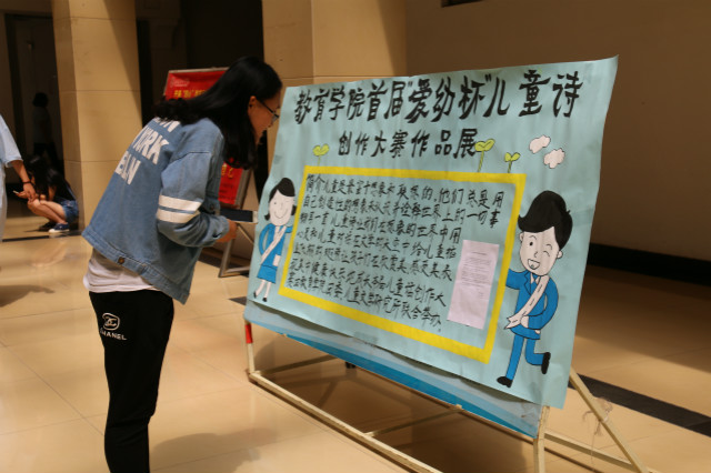 与此同时,教育学院在博文楼一楼大厅举办儿童诗创作大赛优秀作品展览,吸引了广大师生驻足观看。据悉,本次大赛共收到参赛作品100余份,最终评选出一等奖6名、二等奖13名、三等奖26名及优秀奖15名。后期学院将对获奖作品结集成册,形成儿童诗集。大赛的举办不仅彰显教育品牌特色,同时对于培育大学深厚的艺术氛围与人文传统,展示专业能力具有重要的意义。(路敏、战士霞)