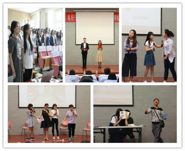 伴着极富童趣的旋律,开场舞蹈《弟子规》拉开比赛帷幕。为表达遵守文明礼仪的决心,全体学生在主持人带领下庄严诵读倡议书。随后,来自九个学院的九支参赛队伍紧扣大学校园文明礼仪问题进行表演,贴近生活的剧情、幽默诙谐的表演赢得了观众阵阵掌声。其中,社会与法学院参赛作品《文明宿舍》以矛盾、冲突、解决为主线,生动有趣的形式表达了“宿舍是我家,爱护靠大家”的理念;教育学院参赛作品《奇葩学姐》诙谐幽默,在理想与现实的冲突中向大家诠释了年轻就要奋斗、人生早立目标的重要性;艺术学院作品《看完这本书》以独具特色的哑剧形式及夸张的动作表演呼吁大家遵守课堂纪律,进而启发大学生对人生的深层思考。一个个文明礼仪情景剧主题鲜明、涵义丰富,凸显了大学生活中常见的宿舍、教室、食堂等方方面面不文明现象,发人深省。