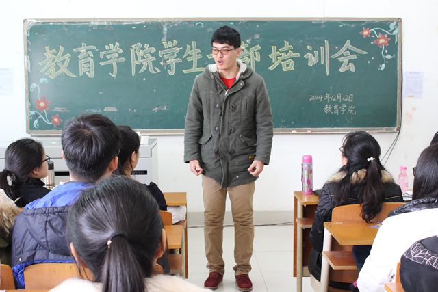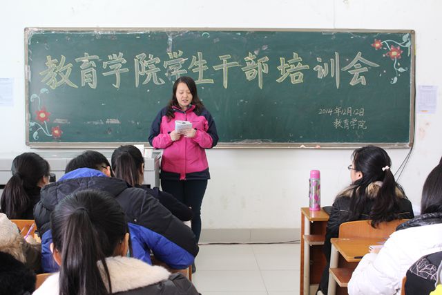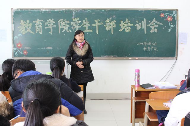 12月12日,教育学院在1号教学楼301室举办了学生干部培训会。教育学院党总支副书记郑全蕾,团总支书记路敏,辅导员王春晓、李娜、陈鹏飞及全体团总支学生会成员参加会议。