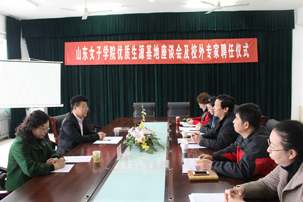 4月2日上午,山东女子学院优质生源基地座谈会及校外专家聘任仪式在教育学院会议室举行。山东女子学院副院长贺兴利、招生就业处处长姚树欣、开元艺校书记王淑萍、校长于洋、教育学院副院长宋小霞及田婧老师出席会议。教育学院党总支书记田莉春主持本次座谈会。