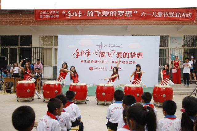 5月30日,教育学院音乐学专业师生到长清万德镇与新之航希望小学的学生一起庆祝“六一”国际儿童节。