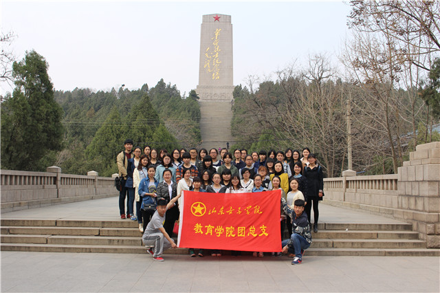 4月2日下午,在教育学院三名辅导员老师带领下,师生一行46人参观了济南战役纪念馆,跟随讲解员共同回顾了那段战火岁月,纪念馆中陈列的笔记、枪支、战略地图等物品令同学们思绪万千、感触颇多。从纪念馆出来,师生们在英雄山烈士陵园祭奠先烈,于纪念塔前默哀三分钟并庄严宣誓,学生代表向烈士献词,表达了不忘战争历史、珍惜美好生活、展望美好未来的爱国情感。最后,全体师生带着对先烈的敬仰级悼念向先烈敬献亲手制作的白绢花。