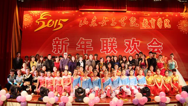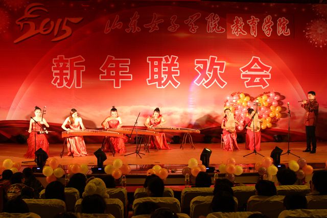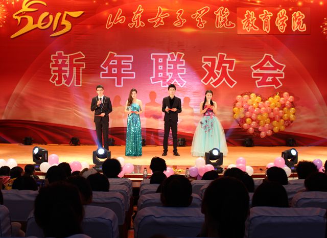 旧岁乘风传捷报,金羊踏歌送征程。2014年12月30日晚,教育学院在图书馆B座二楼报告厅举办教育学院2015年元旦联欢会。莅临本次晚会的嘉宾有学校党委副书记宿建沛,副院长王淑霞、副院长宋兆静,校纪委书记汪琦,校宣传部、工会、教育学院全体师生。