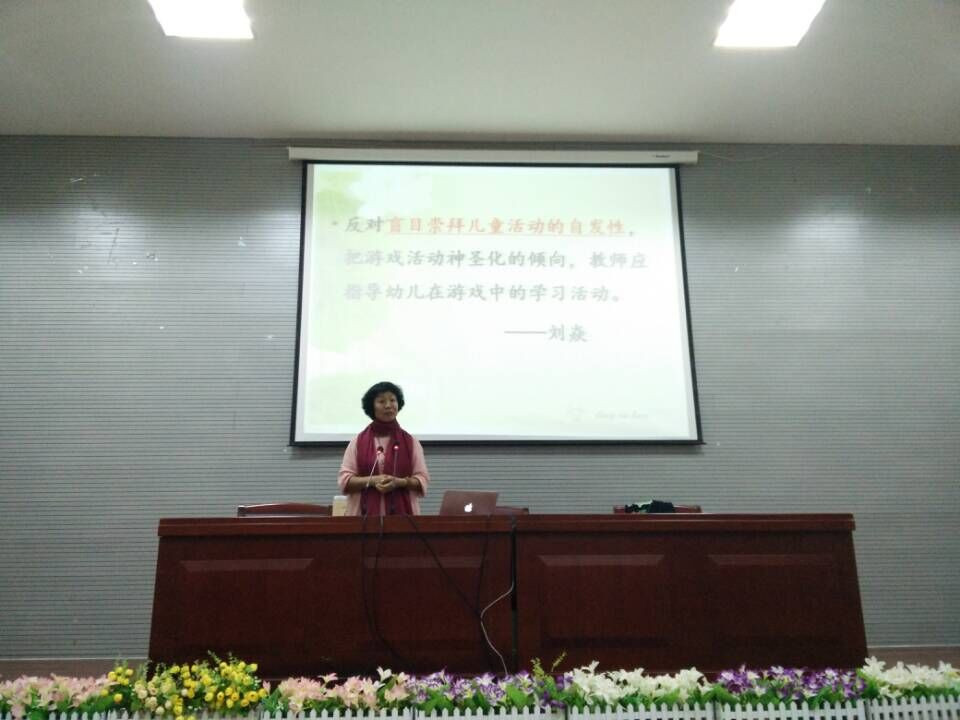 2015年5月7日下午我院董旭花教授在校图书馆一楼报告厅为我校师生做了题为“安吉游戏带给我们的思考”的报告。教育学院教育学院部分师生聆听讲座。