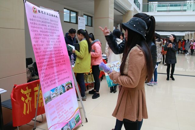 11月8号,我院在2号教学楼举行了2016届毕业生双选会。北京红黄蓝儿童教育科技发展有限公司、中国早教教育协会等来自16个地区的近百家单位为我院提供1644个就业岗位,吸引了近600名2016届毕业生前来参与。山东女子学院副院长贺兴利、招生就业处处长姚树欣、副处长任晓剑、教育学院党总支书记田莉春、副书记郑全蕾、副院长王海霞等领导、老师到现场了解招聘会情况,并与用人单位及毕业生亲切交谈。
