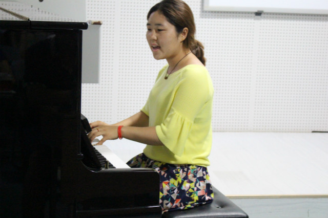 此次比赛共有来自学前教育专业各个年级的30名选手参赛。比赛分为两部分,一是自选曲目,二是抽签曲目(简谱即兴伴奏)。在自选曲目部分,要求选手具有一定的声乐演唱能力、钢琴演奏、伴奏能力,在以上三种能力的基础上,才能达到自弹自唱能力,完成自弹自唱曲目。而抽签曲目(简谱即兴伴奏)环节,提前一天为选手公布决赛曲目表,每位选手现场抽到曲目后,通过阅谱确定调式调性,节拍速度,乐曲风格,并在规定时间内视奏,编配和声音型,看谱唱词,这一环节对参赛者的综合音乐素养要求很高,学生需要运用音乐教育专业所学课程,综合钢琴演奏、声乐演唱、钢琴即兴伴奏、视唱练耳、和声等专业知识,充分显现出各位选手的实际应用能力。