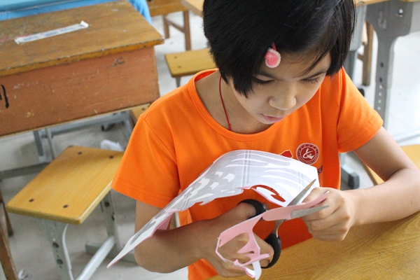 “我是谁”模块的课程以团体心理辅导为主,培养孩子对自我以及所处环境的认知。前期,志愿者通过“汽球传一传”、“雨点变奏曲”等游戏开启破冰之旅,打开彼此沟通交往的心门;在自我认识与自我接纳阶段,志愿者引导孩子自制小名片,学会认识自我并接纳自我。此外,志愿者还针对孩子们的坏情绪开展“情绪紫手环”活动,引导孩子学会管理情绪,带孩子走进“不抱怨的世界”。