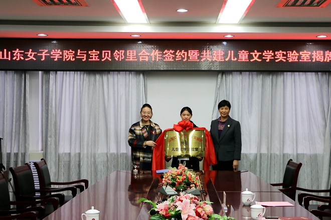 2016年11月1日下午,山东女子学院与宝贝邻里合作签约暨共建儿童文学实验室揭牌仪式在我校第三会议室举行。山东女子学院校长范素华、教务处副处长吕慎敏、教育学院院长董吉贺、教育学院党总支书记田莉春及有关教师参加签约仪式。