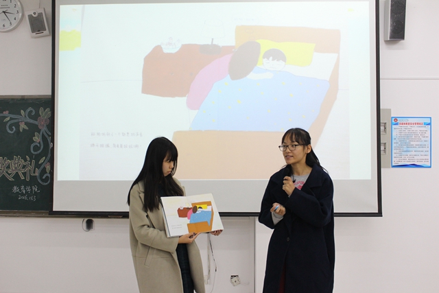 活动伊始,由党总支书记田莉春为本次活动致辞,她指出,绘本是开展儿童早期阅读培育的重要载体,其独特的艺术形式能够激发孩子的阅读兴趣。为此,她鼓励大家要热爱儿童文学作品,认真学习专业知识,将专业理念转化为实践体验,积极参加各种活动以寻求自身能力的提高。随后,田书记、董院长及老师们分别为获奖选手颁发了荣誉证书并合影留念。为进一步推广绘本阅读,提高同学们对学前教育这一专业的认知,学院还组织荣获一等奖的选手进行现场展示各自的作品。可爱有趣的故事情节,精彩的ppt展示,再加上同学们生动的演讲让大家充分感受到了属于孩子的那份纯真。据悉,本次大赛共收到参赛作品60余幅,最终评选出一等奖6名、二等奖10名、三等奖20名。