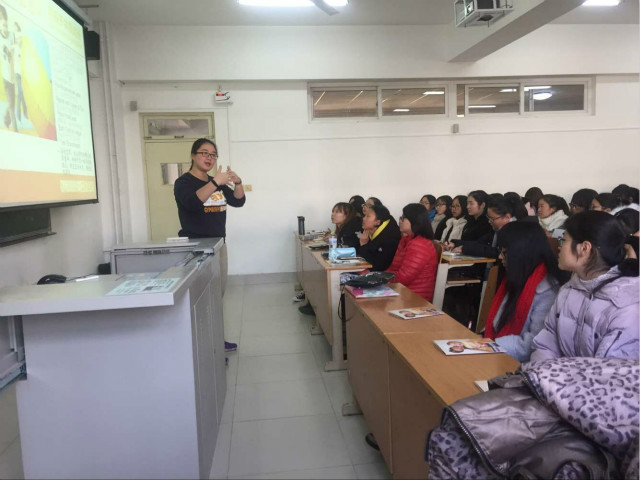 2016年11月24日,教育学院于博学楼310举办了“金宝贝国际早教”宣讲会。此次会议由教育学院就业创业指导中心主办,济南金宝贝国际早教中心的Chris Tina导师主讲。教育学院部分早教专业学生以及学前教育专业毕业生参加了此次会议。