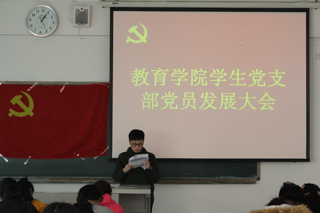 2016年12月1日中午,教育学院学生党支部于博学楼213隆重举行了接收预备党员支部发展大会。教育学院的学生党支部全体成员参加了此次会议。