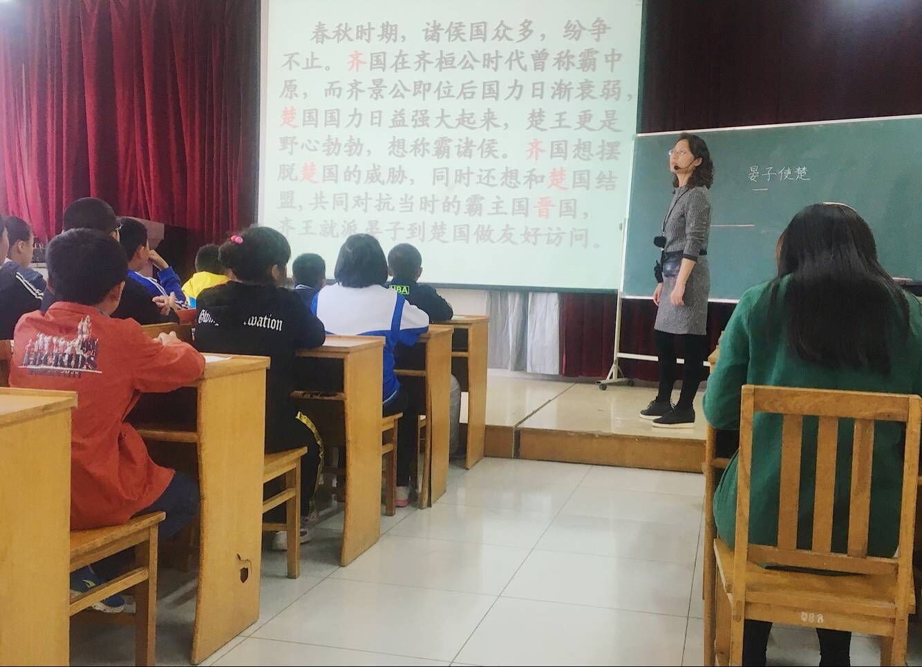 本次观摩课由小庄小学优秀教师季玉琴主讲,讲课内容为:小学语文五年级课文《晏子使楚》。在课堂教学中,季老师充分运用多媒体进行辅助教学,清晰画面的呈现,生动场景的再现,使得课堂气氛非常活跃。教学过程中,季老师由字到词,由词入句,从课堂知识引申到中华传统文化知识,一步一步引导孩子们理解课文,以具体形象的“图、文、音、视、动”来创造教学情景,同时师生互动共同演绎情景剧加深了学生对于课文的理解,使抽象的教学内容具体化、生动化。