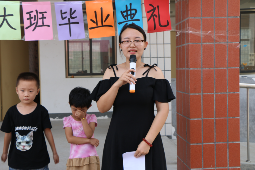 迎着清早第一抹阳光,志愿者一行人早早奔赴幼儿园进行场地布置,在五彩缤纷的黑板报以及彩色气球装饰的衬托下,校园显得格外的美丽与温馨。毕业典礼上,孩子们用稚嫩的童音演绎诗歌《悯农》、《游子吟》;以惟妙惟肖的动作和绘声绘色的表演展示儿童故事的魅力;《蜗牛与黄鹂鸟》、《说唱脸谱》等唱出了童真童趣;舞蹈《踩踩踩》、《大王叫我来巡山》中,孩子们用活泼可爱的动作跳出了属于孩子们的青春活力。活动中,幼儿园老师进行致辞,感慨一起度过的三年时光之快,也为即将毕业的大班孩子送去了真挚的祝福。