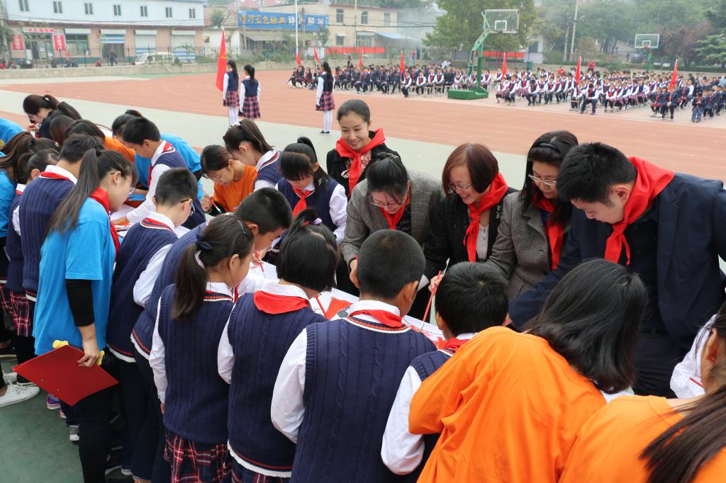 为迎接党的十九大胜利召开,进一步提升共青团员和少先队员的国家意识和爱国情怀,10月16日上午,教育学院联合市中区陡沟街道小庄小学开展“喜迎十九大·永葆爱国心”爱国主题活动。学校党委副书记王淑霞、市中区政协副主席陈淑平出席活动,党家街道党工委、共青团市中区委、学校团委、教育学院党总支等相关负责同志,社会实践带队教师、学院部分志愿者、小庄小学的全体小学生参加了活动。