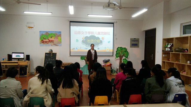 2017年11月2日下午16:00,山东女子学院儿童戏剧社面向16、17级全体学生于博雅楼B座401进行纳新活动。参加此次活动的有:儿童戏剧社总负责老师王元凯、各位社团负责人以及16、17级部分学生。