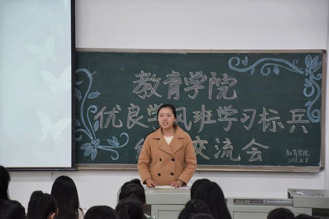 2017年11月8日,教育学院于博文楼103召开优秀学风班学习标兵经验交流会,15、16级学习标兵班代表、学习标兵以及17级的部分新生参加此次活动。
