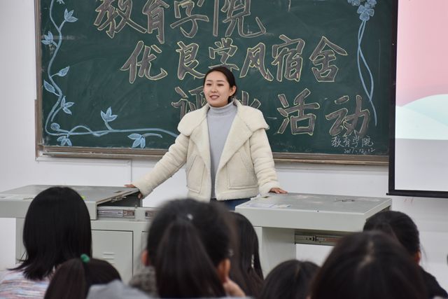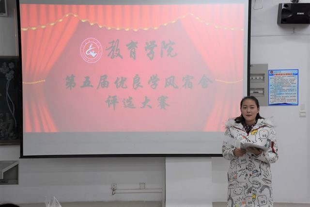 12月12日晚18:00,教育学院于博文楼108举行优良学风宿舍评选活动。教育学院学生会副主席马慧茹、记者团副团长张敬敏、办公室部长闫佳欣、宣传部部长朱潇萍、网络推广部部长杨帆担任此次活动的评委,16、17级部分学生参加此次活动。