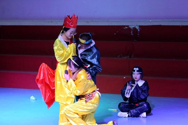 2017年12月21日,教育学院于博文楼508举行《幼儿园戏剧教育》课程期末汇报演出。幼儿园戏剧教育课程是以3-6岁幼儿戏剧素养启蒙为核心的一种戏剧艺术领域课程,还是幼儿早期课程的重要组成部分,包括幼儿园戏剧游戏、幼儿园戏剧主题活动、幼儿园戏剧工作坊等。参加此次汇报演出的有教育学院院长董吉贺、15级学前教育(国际方向)本科班辅导员兼班主任王春晓老师、《幼儿园戏剧教育》任课教师王元凯以及15级学前教育(国际方向)本科班全体同学。