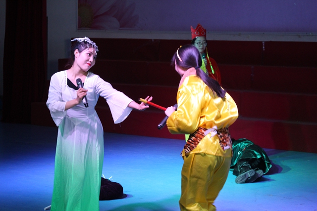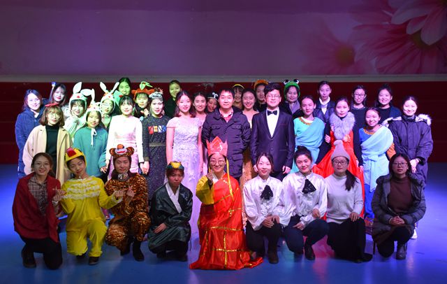 此次期末汇报演出同时也是一次专业课程的期末考试,是一次教学改革的新尝试。全班同学利用课堂所学,结合课外实践共创编了五个儿童剧,分别是儿童剧《外婆家的小红帽》、情景音乐剧《羞羞的小狼》、英语儿童剧《为师错怪你了》、儿童剧《魔镜外传》、英语儿童剧《谁掉的水晶鞋》。一幕幕情节跌宕起伏,表演细腻诙谐的儿童戏剧在悠扬欢快的音乐下被学生们活灵活现的演绎出来。真实可爱、色彩鲜明的服装、精致多样的道具、优美活泼的舞蹈动作无一不体现了学生高水平的专业素质和一丝不苟的学习态度。儿童戏剧《外婆家的小红帽》、《魔镜外传》,情景音乐剧《羞羞的小狼》将传统童话故事加以创新改良,以新颖的表演形式向孩子们传达安全意识。英语儿童戏剧《为师错怪你了》、《谁掉的水晶鞋》全英语演绎,15级学前教育(国际方向)的同学充分利用自身专业知识技能,标准英语发音,抑扬顿挫的语调展示了学前教育国际方向学生双语教学的专业特色,将儿童耳熟能详的故事用英语栩栩如生的刻画出来。舞台上的演员们通过问答的形式与观众合作来推动情节的展开,不仅拉动了演出的气氛,更是将现场观众带入梦幻神奇的童话世界。最后,演出在一片掌声中圆满结束!