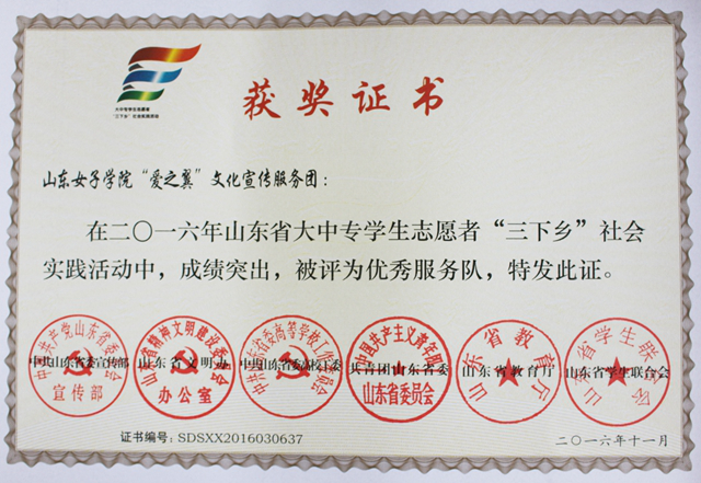参加支教的两支团队相继获评团中央“全国百强实践团队”、“镜头中的三下乡”好团队称号,“千校千项”之“最具影响好项目”、团中央未来网“优秀团队鼓励奖”、“优秀项目鼓励奖”、省社会实践优秀团队等多项奖项。富有实效的志愿服务活动在当地引起了良好社会反响,活动得到当地人民群众的大力支持和赞誉,团中央网站、人民网、大众网、舜网、中国山东网、鲁网等数十家家媒体给予报道。
