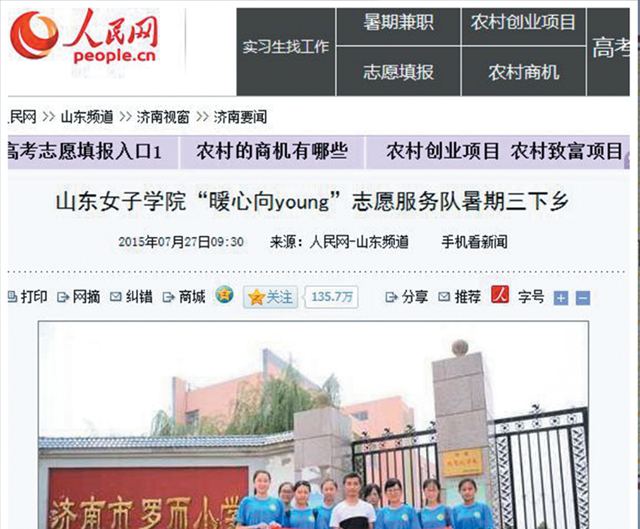 2015年至今的每个暑期,“暖心向YOUNG”志愿服务队和“爱之翼”志愿服务队都会赶赴三所小学开展青春三下乡之旅,带领三所小学的150名小学生开展了为期十天的营会活动。通过“墨韵书香”书法课堂、“手铸初心,功不唐捐”手工课堂,“音乐之声”英文合唱、“头脑小风暴,科学大梦想”科学实验等校内活动。校外的“行走的课堂”带领小学生开展“魅力大学·精彩世界”赴书香女院参观、“感受海洋世界”赴极地海洋世界参观学习、“走进经典·牧野传奇”观影、“追寻历史足迹”赴山东省博物馆参观学习等活动,进一步开阔小学生的视野,同时开展“感恩亲子活动日”。