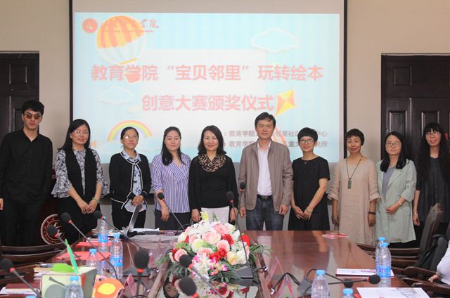 5月10日下午2点,教育学院“宝贝邻里”玩转绘本创意大赛颁奖仪式在求新楼402举行,本次活动由教育学院团总支与儿童文学研究所承办。出席此次颁奖仪式的有宝贝邻里社区教育中心总经理柴红、教育学院院长董吉贺、宝贝邻里教研总监权尊花、教育学院党总支副书记崔江宁以及部分师生代表参加了此次活动。