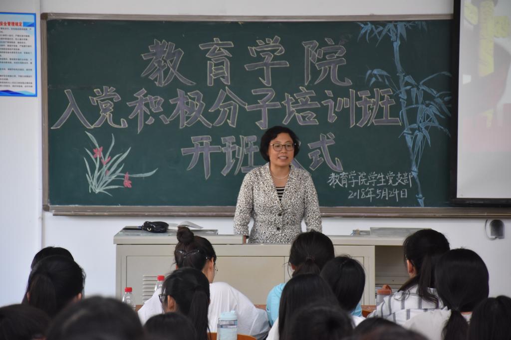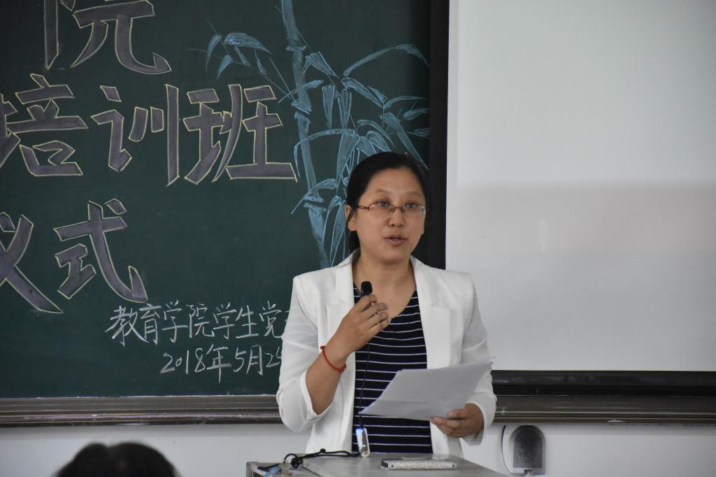 5月24日下午,教育学院2018年入党积极分子培训班开班仪式在博文楼201举行。出席本次仪式的领导老师有教育学院党总支书记李君、党总支副书记崔江宁,团总支书记路敏,教师陈鹏飞以及教育学院的入党积极分子同学。此次会议由崔江宁同志主持。
