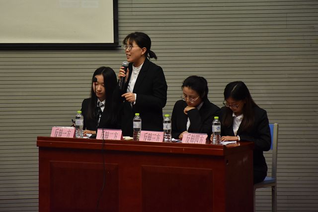 两只队伍围绕“教育创新易OR难”的辩题展开辩论,共分立论、质询、自由辩论及辩论总结四个环节。赛场上,正反双方辩手立论坚定,涉及面广。首先正方认为在国家政策积极扶持、社会高度关注、科技高速发展、主流思想开放的时代大背景下教育创新是容易实现的。反方从创新型教育人才稀缺、教育环境地区差异大、科技资源发展不均等方面来论证教育创新难。自由辩论时,正反双方唇枪舌剑,思维敏捷,在进一步的阐述证明自己观点的基础上,针对对方的发言漏洞进行反驳。反方辩手以教育影响的不可逆性阐明教育创新对于孩子的不确定性太大,在没有历史经验及成熟方案指导下的创新难以施行来进一步论述反方观点,博得大家的真真掌声。选手们在辩论场上妙语连珠,现场的激烈气氛给在场的老师和同学留下深刻的印象。
