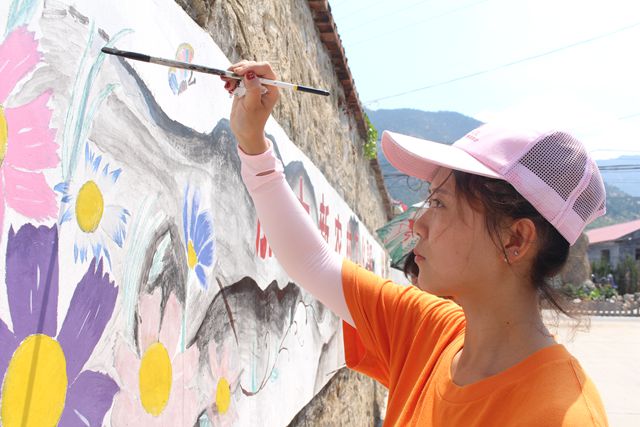 两幅印有“手拉手,心连心,女院马套一家亲”和“加大新农村文化建设,促进新风尚农村文化”的墙绘,不仅是来自女院的志愿服务者们对马套的深厚情谊,也是对马套的美好祝愿。