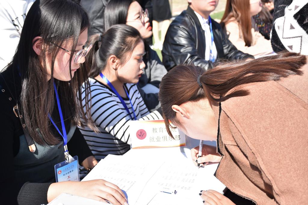 本次招聘会本着“为企业寻求人才,为人才寻找岗位”的理念,开诚布公,为毕业生们提供了种类丰富、待遇优厚的岗位。上午9点,招聘会正式开始,一时间风雨操场上可谓是人才济济。企业招聘人员们或坐在相应的服务台前,认真回答着学生们的问题,或手执传单,向学生们耐心介绍自己的公司。教育学院的毕业生们拿着自己精心准备好的简历,面对此情此景也是应接不暇。有的根据自己的实际情况迅速找到了适合自己的公司,有的则处处详细咨询。其中教育类企业以幼儿园为主,这些企业详细的向毕业生们介绍了招聘目标、上岗流程及工薪待遇,招聘目标主要为储备园长、幼儿教师、早教教师、课程顾问等。上岗流程或为先带薪培训再就业上岗,或为“以旧带新”模式在实践中锻炼能力。这些企业拥有高尚的价值观、办学宗旨和教育理念,办学特色鲜明。形式、要求各不相同,为毕业生们开辟了多条选择道路。