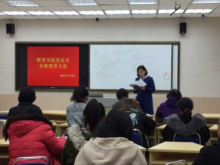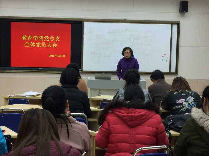 11月8日下午,教育学院党总支于博雅楼B201室召开全体党员大会,传达部署学校关于加强基层党组织建设的有关要求和工作任务。党总支书记李君做主题发言,学院全体师生党员参加。会议由党总支副书记崔江宁主持。