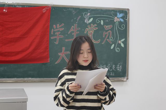 2018年11月22日12点,山东女子学院教育学院学生党支部于博学楼310召开学生党员发展大会。大会由教育学院学生党支部书记王春晓主持,支部组织委员李绍妮老师、支部学生党员和教育学院27名发展对象出席此次大会。