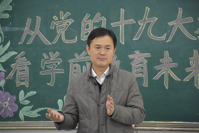 党课从三个部分进行了阐述。一是党的十九大有关学前教育的论述。董院长围绕“幼有所有”、“学有所教”等关键词为大家进一步讲解了十九大中有关学前教育的部分,展望了学前教育的发展前景;二是落实十九大报告的相关教育文件和政策。董院长给大家介绍了相关学前教育的文件,带领大家简要学习了《中共中央国务院关于学前教育深化改革规范发现的若干意见》,并为大家讲解文件内相关学前教育的部分内容;三是学前教育的未来发展。董院长通过相关文件向大家介绍了学前教育的前景。我国到建党一百周年时要建成科教更加进步的社会主义现代化,我国从现在到2020年要坚持实施科教兴国战略,重视国家教育的发展。到2050年,我国基本公共服务均等化要基本实现,其中的公共服务就包括着教育的均等化。