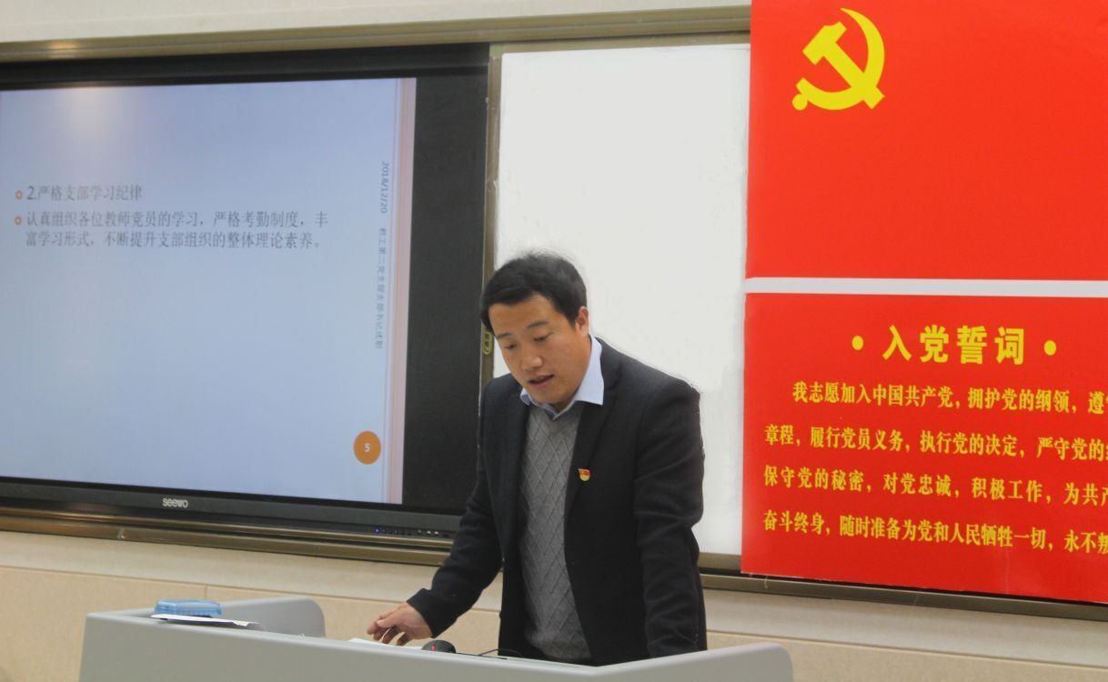 随后,党总支副书记崔江宁向全体党员汇报了党总支一年来的主要工作。崔江宁书记介绍了党总支的工作思路,总结了2018年的工作措施和成效、分析了存在问题及原因,也展望了2019年的党总支工作。