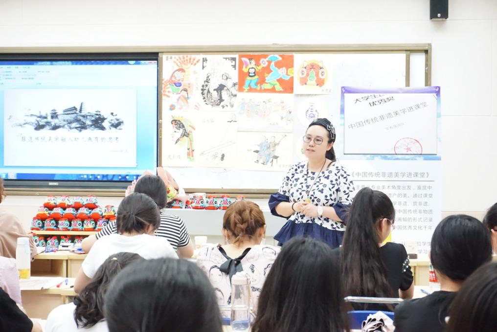 傅晨副教授结合学前教育专业的学科特点和幼儿发展的特点,把学前教育专业学科与非物质文化遗产相关性进行了分析和匹配,使同学们对自己的课程进行梳理,根据学前教育学科特点整合非遗文化资源,开发符合幼儿认知特点的非遗文化资源库。
