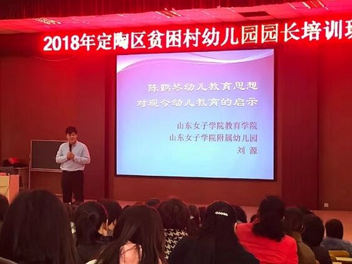 11月16日,根据学校工作安排,结合学校组织部工作部署,教育学院董旭花教授和刘源博士前往我校“第一书记”驻村所在地定陶区实验幼儿园,为定陶区300余位村办幼儿园园长开展了为期1天的业务培训。定陶区教育局副局长李兆峰、学前科科长徐兰云出席本次培训。