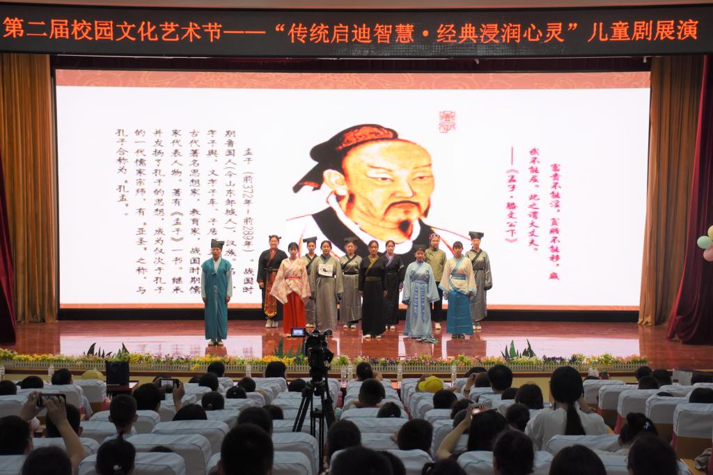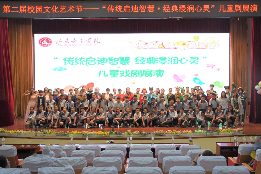 5月25日下午,在六一国际儿童节到来之际,山东女子学院第二届校园文化艺术节“传统启迪智慧·经典滋润心灵”儿童戏剧展演在图书馆二楼报告厅举行。本次展演由校团委主办,教育学院团总支承办,学校团委、教育学院党总支负责人及部分师生来到现场观看演出,来自济南市小庄小学、山东师大附属小学、山东女子学院附属幼儿园的二百余名学生及家长们也前来观看。
