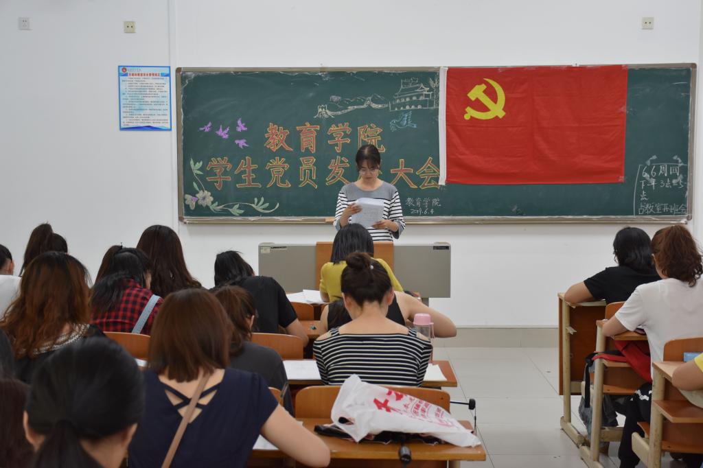 6月4日中午,教育学院学生党支部于博文楼113召开了学生党员发展大会。本次支部大会由学生党支部书记王春晓主持。支部应到党员60人,实到54人,6人请假;正式党员应33人,实到30人。教育学院党总支副书记崔江宁列席会议。