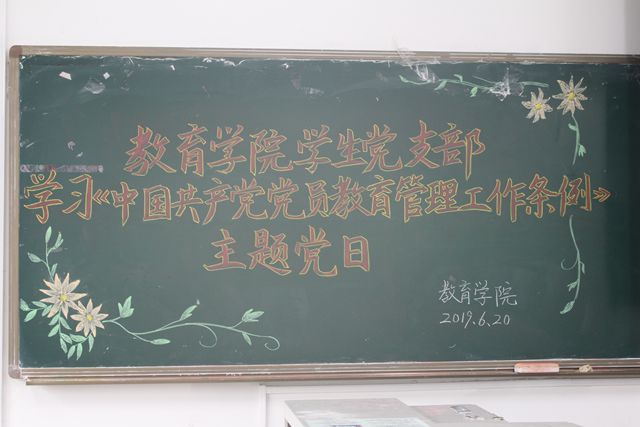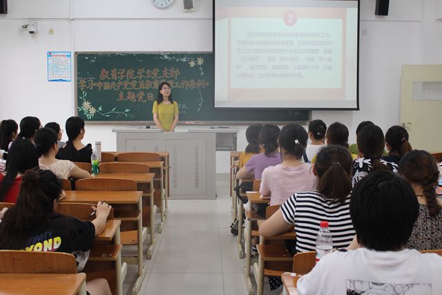 6月20日下午,山东女子学院教育学院学生党支部组织在校师生党员学习《中国共产党党员教育管理工作条例》。本次活动由党支部书记王春晓老师主讲。