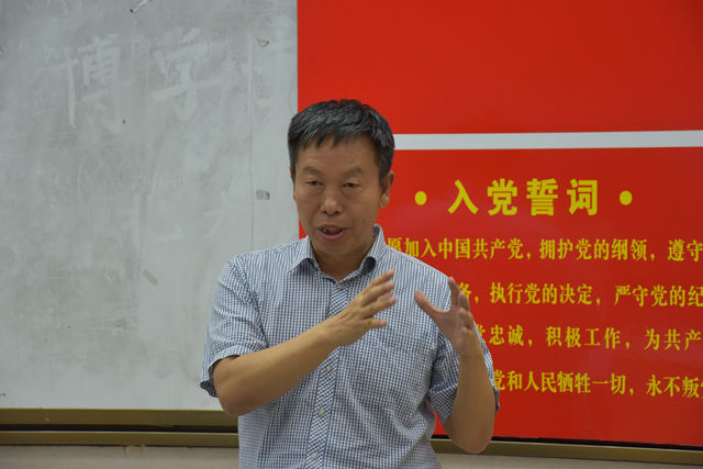活动在嘹亮的国歌声中拉开序幕。毕业季正值“七一”党的生日前夕,全体师生党员在支部宣传委员路敏老师的带领下,面向鲜红的党旗庄严宣誓,重温入党誓词。随后,两名毕业生代表和一名在校生代表分别发言,情真意切的回忆了入党初心、表达了作为学生党员的理想和担当,现场气氛热烈感人。教育学院崔江宁书记高度肯定了毕业生党员在校期间的表现,并提出殷殷嘱托并赠予祝福,也对在校党员寄予期望。最后,盛国军校长以“马克思主义哲学与人生”为主题,为在场党员上了一堂生动的思政课,深入浅出的解读了马克思主义哲学内容,并鼓励同学们自觉用马克思主义哲学指引人生方向,做到实事求是、一分为二、重视实践。同时,盛校长还建议学生党员们多读经典著作、抵制物质诱惑、因势而为、专注求学,为毕业生送上美好祝愿。活动最后,盛国军校长、崔江宁书记与全体支部师生党员合影留念。