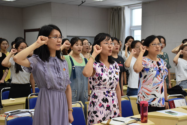 6月27日上午,教育学院学生党支部在博雅楼B201室举行“忆初心 温誓词 别母校 踏征程”毕业生党员主题党日活动。山东女子学院校长盛国军、教育学院党总支副书记崔江宁及学生党支部师生党员参加活动。学生党支部书记王春晓主持。
