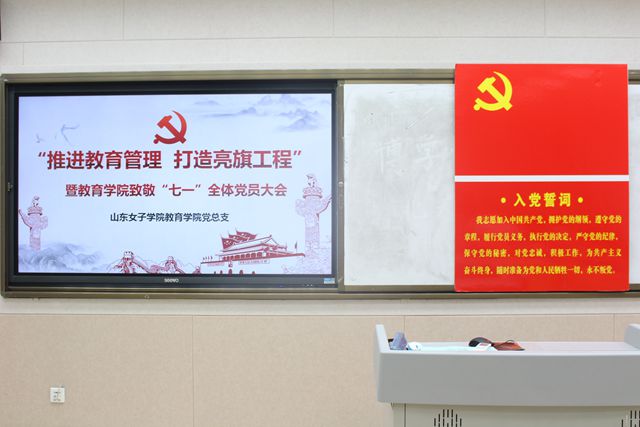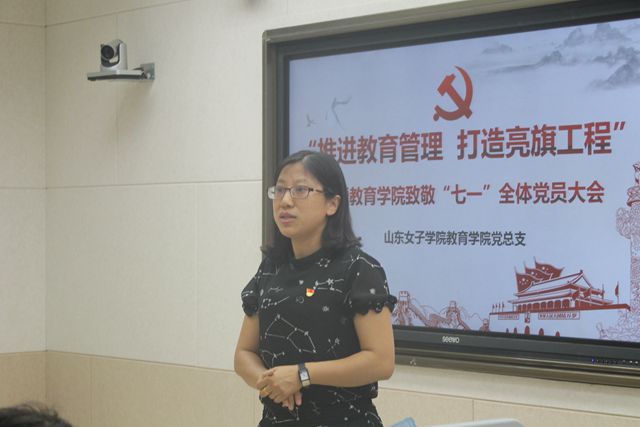 会上,首先由教育学院院长、党总支副书记董吉贺带领全体党员学习《中国共产党党员教育管理工作条例》内容。随后,崔江宁详细解读了教育学院党总支书记抓基层党建突破项目方案--《亮党员旗帜、做时代先锋》。接着,教育学院教工第一党支部、第二党支部和学生党支部书记分别向大会汇报各支部围绕学生学业生涯与指导、教师发展和学生服务领域的“亮旗工程”具体举措及进展情况。在榜样领航环节,科研秘书、博士程伟老师,山东省优秀辅导员获得者李绍妮老师分别结合本职岗位做事迹汇报。会议最后环节,教育学院党总支书记李君结合本次会议主题,围绕如何加强党员教育管理、打造亮旗工程为全体党员上了党课。