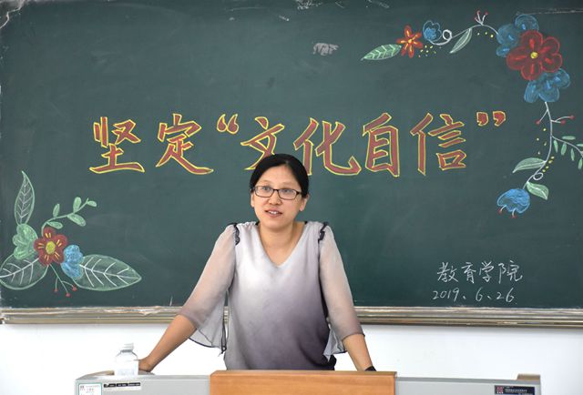6月26日下午,教育学院党总支副书记崔江宁于博学楼113给教育学院部分党员和入党积极分子上党课。党课题目为:坚定“文化自信”。