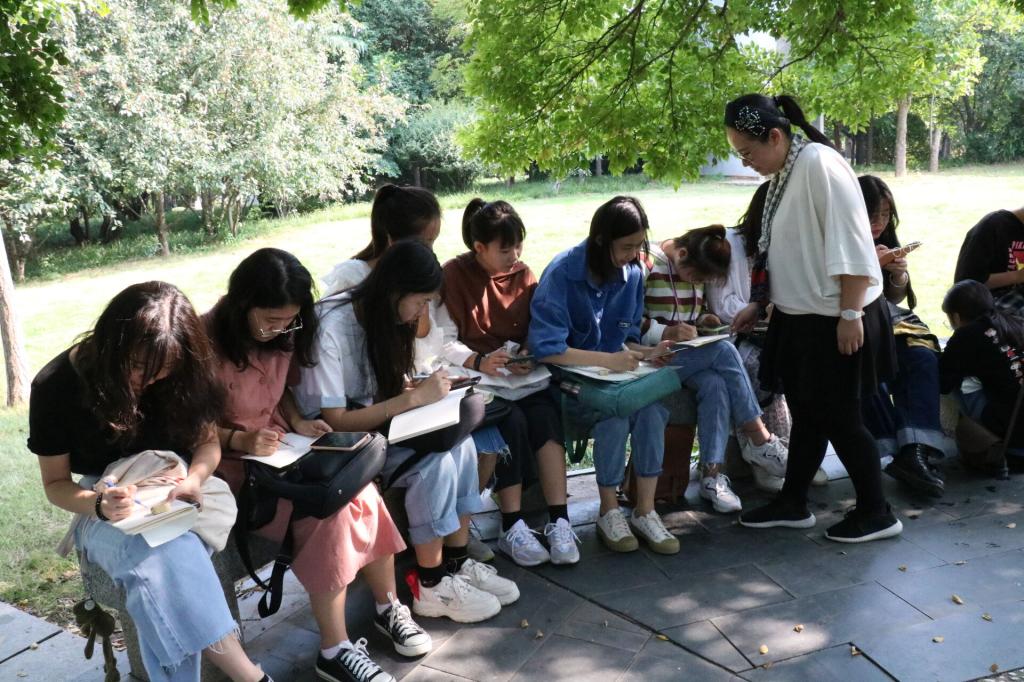 基于分享儿童自然乐趣的初衷,依照郊外、植物园周边、温室,农作物为线索,未来的准幼儿教师们记录和梳理一下身边的自然,用图文并茂的方式把周边公园的植物栩栩如生地呈现在自然笔记里,展现神奇自然中各类植物的奇妙变化。在本学期《幼儿园数学教育》课程中,傅晨老师带领17学前教育本科、春考的学生们去探寻藏在身边的“自然博物馆”,梳理作为未来的幼儿园教师应该具备的一些知识经验:如在大自然中存在的数、量、形的概念。