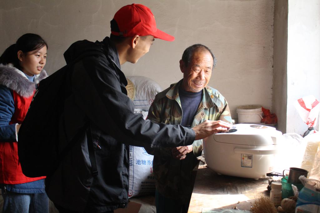 活动中,志愿者们深入到万德镇朱家泉村、西侯村、界首村等村庄,走访了30户贫困家庭,这些老人们大多都是靠低保、医保或者依赖自己的种地收入来维持生计,也没有其它的经济来源,生活较为贫困。每到一户家庭,志愿者们除了给老人送去慰问品——电饭煲,还亲切地与老人们进行交流,关心老人的身体情况。这不仅为老人的日常生活提供了方便,同时也给老人带来了欢乐,送去了关爱与陪伴。交流中,志愿者们嘱咐老人要注意好身体,保持乐观心态,祝愿他们的晚年生活能够幸福地度过。考虑到老人们年事已高,大部分不会使用电器,而且电器也有一定的危险,所以志愿者们细心地为老人讲解了电饭煲的使用方法和注意事项。看到老人们灿烂的笑容,听到老人们真诚的感谢,志愿者们也感动不已,觉得不虚此行。在走访过程中,有些老人因病卧床,生活不便,为此志愿者们为他们做了一些力所能及的家务,以减轻他们的生活负担。在王德新老人家中,志愿者们还为行动不便的他打扫了室内以及庭院卫生,帮助老人添柴烧水,洗刷碗筷。临走时,志愿者们与老人亲切地握手,传达内心的温暖。最后,老人们还热情地送给志愿者们自家种植的石榴和花生,以此来表达对志愿者们的感谢和不舍。