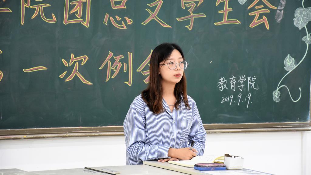 9月19日下午,教育学院于博文楼召开团总支学生会、自律会第一次全体例会,出席本次例会的有教育学院辅导员李绍妮老师、学生会主席张梦琪、团总支副书记高峻峻、自律会主席景韵、新媒体中心团长李金婷及各副主席、部门部长和学生干事。