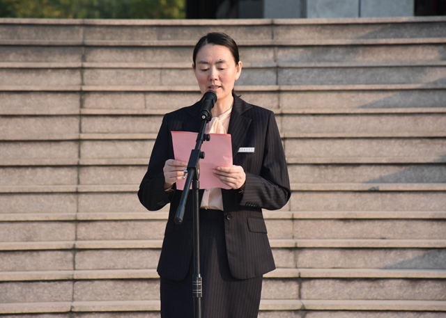 早上7:30整,庄重严肃的升旗活动开始。全体师生精神抖擞,热情高涨,准时在巾帼广场前整齐列队。学校国旗护卫队迈着铿锵的步伐来到了国旗台下,全场一片肃静。在激昂的《义勇军进行曲》中,鲜艳的五星红旗徐徐升起,全体师生深怀对祖国无限的热爱和崇高的敬意向国旗行注目礼,奏唱国歌。随后,马克思主义学院石荣菊老师讲授了以“回望民族初心,砥砺奋进新时代”为主题的微党课,与学生们一同回望祖国七十周年沧桑巨变和风雨历程,鼓励新时代青年人要牢记历史使命,保持民族初心,砥砺奋斗,致敬新时代。活动进行第三项,由教育学院学生代表褚柯、高乾坤进行国旗下演讲《祖国在我心中,梦想从这里启航》,号召同学们要坚定理想信念,学习革命先辈披荆斩棘、克服艰难险阻的决心与意志,彰显新时代青年的责任与担当。最后,全体师生合唱《我和我的祖国》,伴着激昂的旋律,同学们挥舞着手中的国旗,心中燃起“苟利国家生死以,岂因祸福避趋之”的壮志豪情。